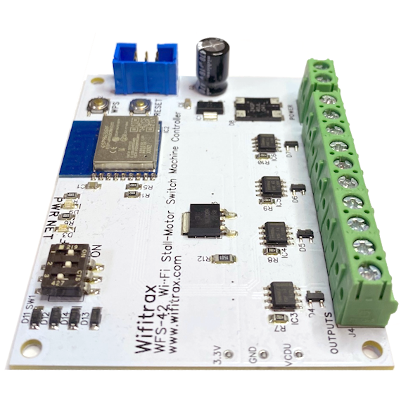 The WFS-42 can operate stall-motor switch machines only. It does not have its own DCC input but relies on the WFD-60 to accept DCC for a collection of WFS-42 modules.