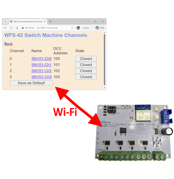 With this module you can use Wi-Fi to control up to four stall-motor switch machine channels in many different ways